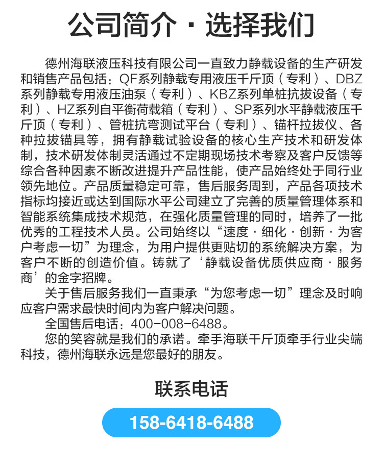 加壓系統(tǒng):設備采用本公司靜載試驗千斤頂,配套靜載試驗油泵,壓力調節(jié)輕松易控。